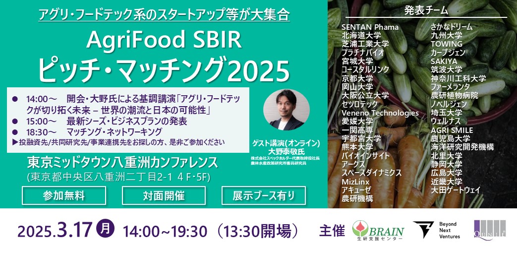 【主催】 生物系特定産業技術研究支援センター(BRAIN)、Beyond Next Ventures株式会社、株式会社クニエ